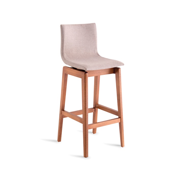 Banqueta em madeira maciça. Concha multilaminada estofada. Diversas opções de tecido.