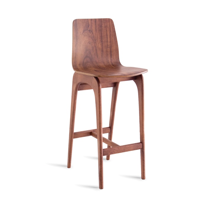 Banqueta em madeira maciça. Concha multilaminada.