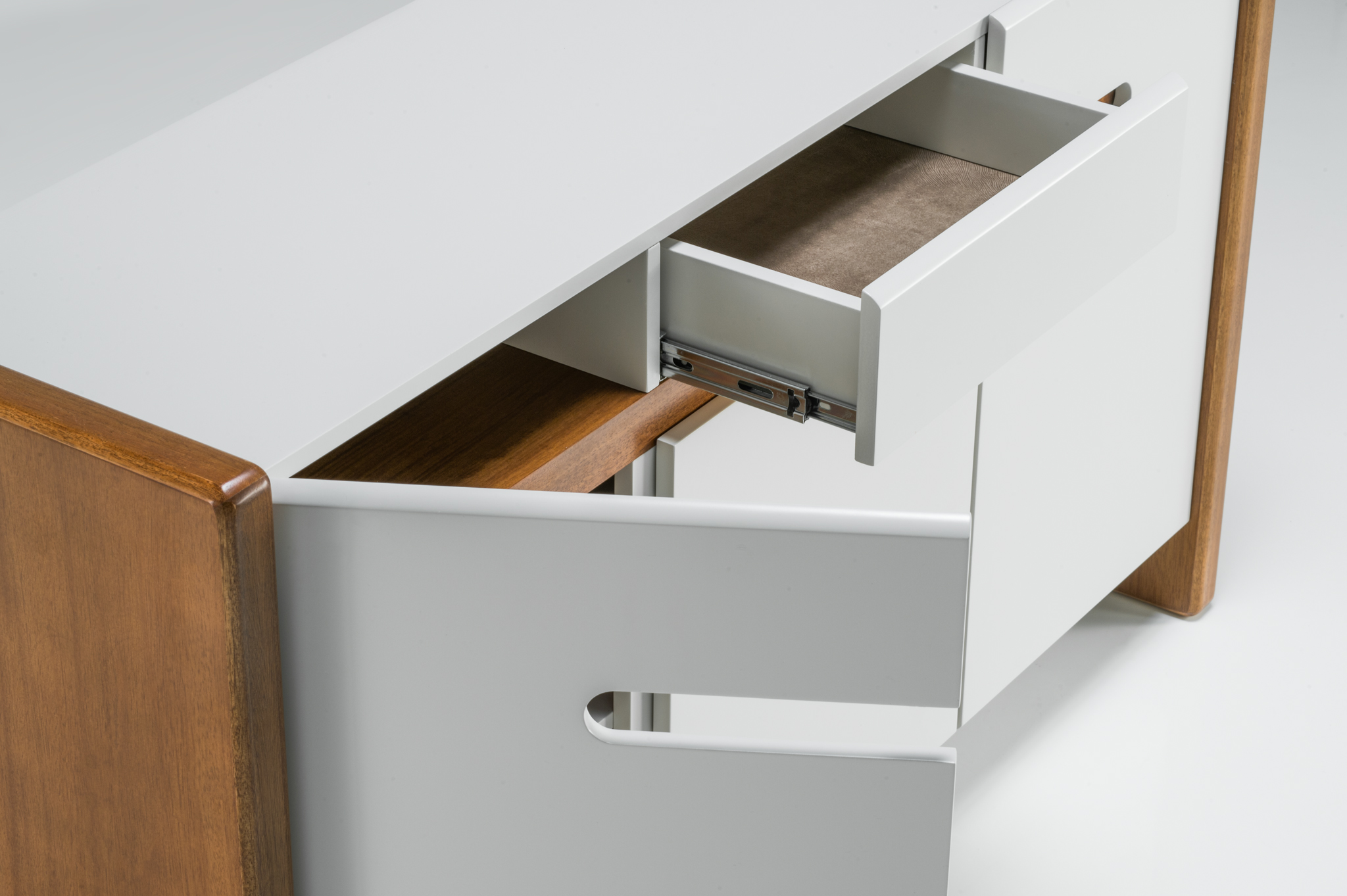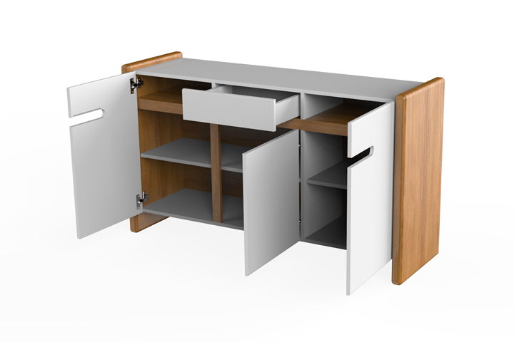 Possui a estrutura em MDF cru ou laminado madeira. O produto conta com uma gaveta que possui tecido veludo no fundo para suavizar o atrito com os objetos ali colocados e movimentam suavemente devido às corrediças telescópicas. Também conta com três portas que possuem dobradiças com amortecimento para suavizar o fechamento.
