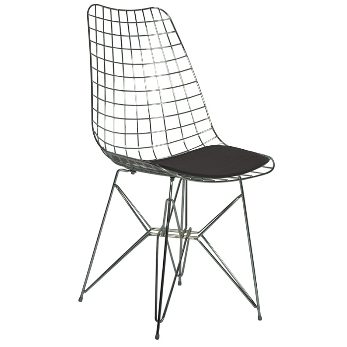 Cadeira em aço maciço cromado. Concha aramada e almofada em EVA. Diversas opções de tecido.
