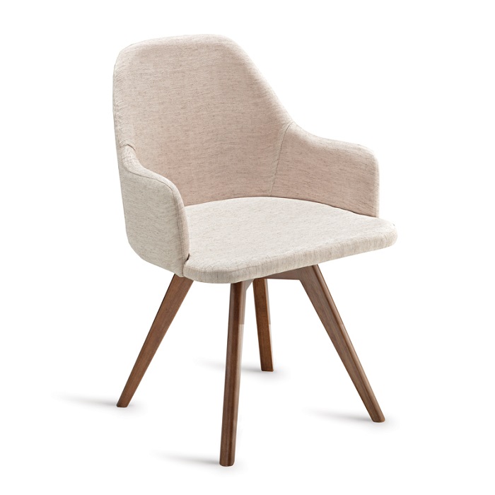 Cadeira com base em madeira maciça (opções fixa e giratória).
