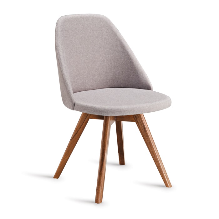 Cadeira com base em madeira maciça (opções fixa e giratória). Concha em multilaminado estofado.