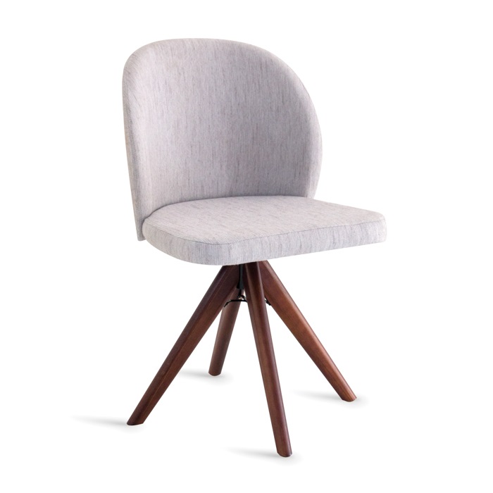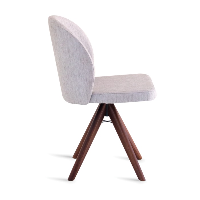 Cadeira com base em madeira maciça. Concha em multilaminado estofado. Opções de pé: 4 pontas CR Light/ cone giratória