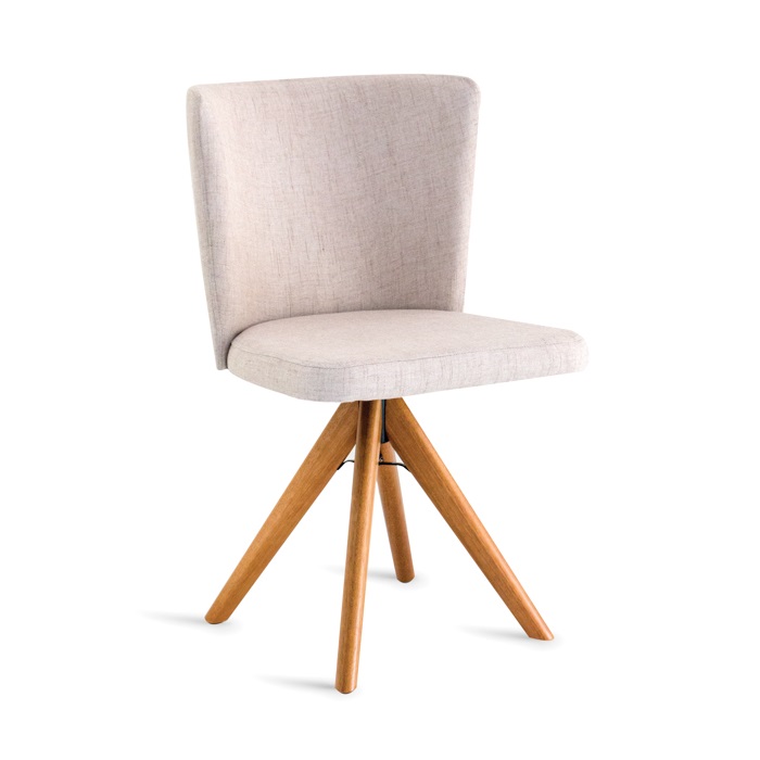 Cadeira com base em madeira maciça. Concha em multilaminado estofado. Opções de pé: 4 pontas CR Light/ cone giratória