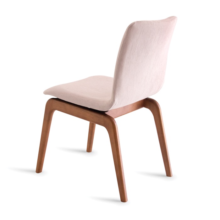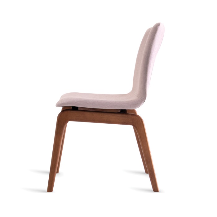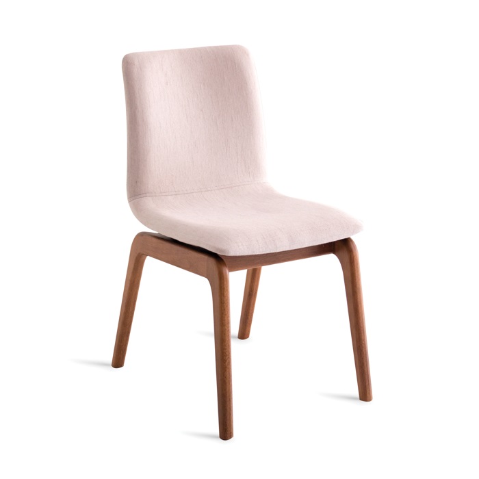 Cadeira com base em madeira maciça. Concha em multilaminado estofado.