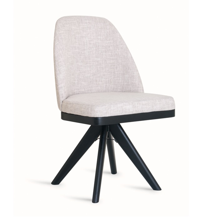 Cadeira com base em madeira maciça. Concha em multilaminado estofado.