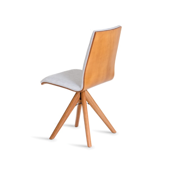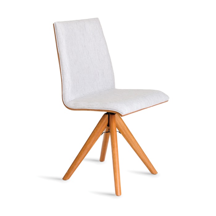 Cadeira com base em madeira maciça. Concha em multilaminado estofado. Opções de pé: 4 pontas CR Light/ cone giratória