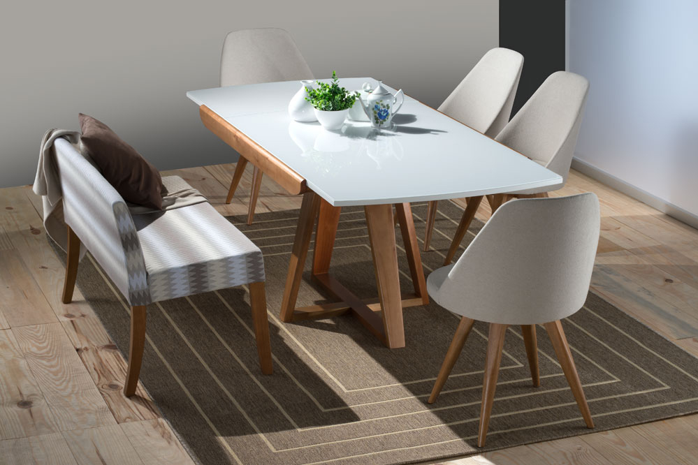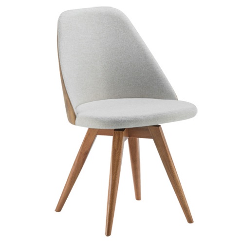 Estrutura em madeira maciça de eucalipto, sistema giratório de movimento suave de alta resistência desenvolvido pela J.Marcon em aço e nylon. Apresenta concha em MDF ergonômico estofada com espuma de boa densidade e revestida com tecido.