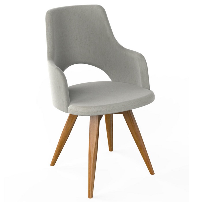 Estrutura em madeira maciça de eucalipto, sistema giratório de movimento suave de alta resistência desenvolvido pela J.Marcon em aço e nylon. Apresenta concha em MDF ergonômico estofada com espuma de boa densidade e revestida com tecido.