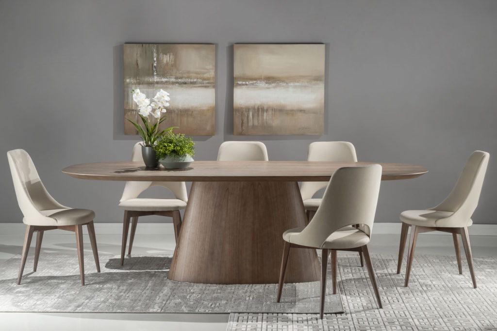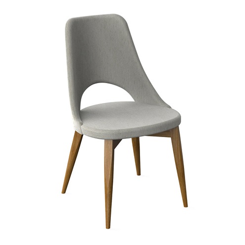 Cadeira Mel com estrutura em madeira maciça de eucalipto e concha em MDF ergonômico estofada com espuma de boa densidade e revestida com tecido.