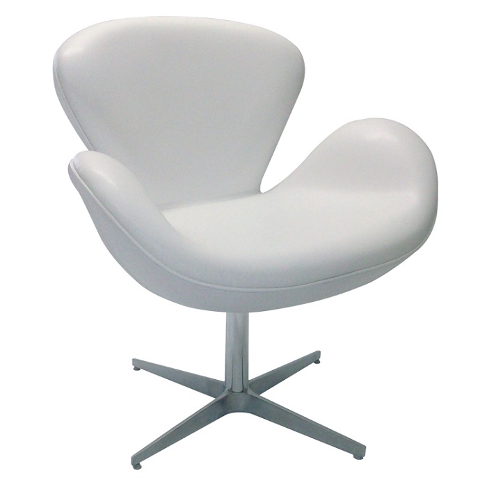 Poltrona giratória (alumínio/inox). Concha em fibra de vidro estofada.