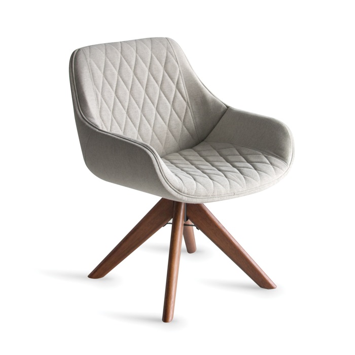 Poltrona giratória. Concha em multilaminado estofado. Com opções de pés Cromado/alumínio/inox/madeira.